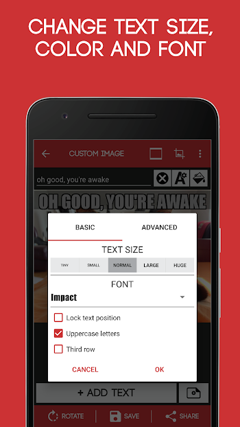 ✓ The app DOES NOT automatically upload any meme you create – your privacy is our top priority!