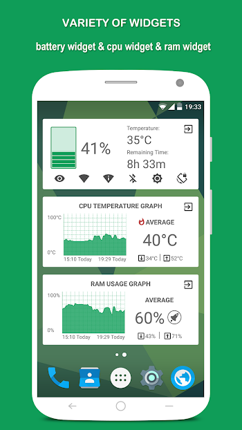 The most beautiful and powerful System Monitor for Android! Include RAM Booster, Battery Monitor and CPU Monitor. You are able to monitor CPU, RAM, Apps and your Battery at the same time. Powerful System Monitor provides RAM widget, CPU widget and Battery widget. You can monitor the RAM, CPU and Battery information on the home screen very convenient.